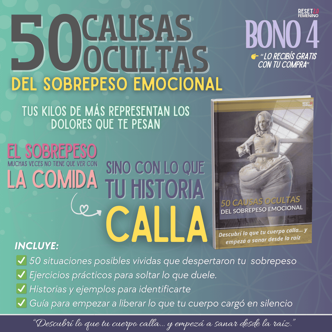 Un programa diseñado para ayudarte a bajar la inflamación, recuperar tu energía y empezar a sanar las emociones que sostienen tu sobrepeso.